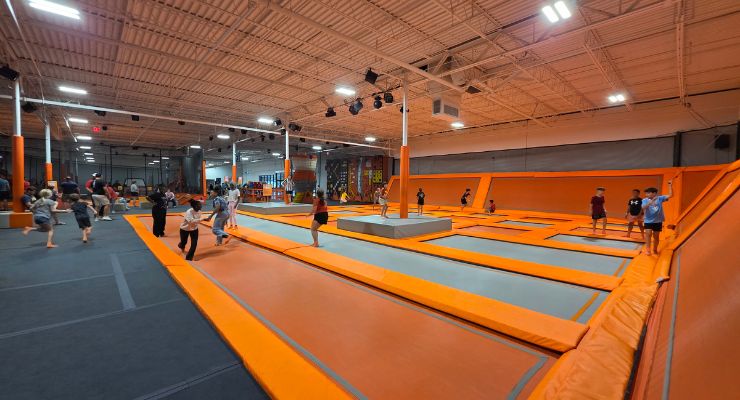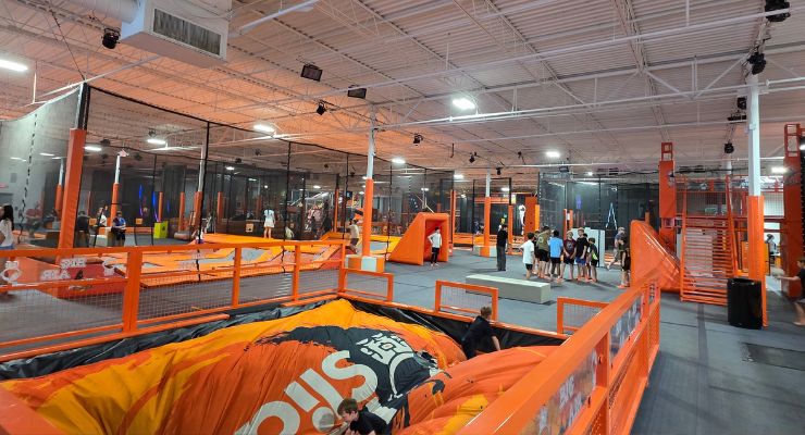 For children, there is a dedicated zone designed specifically for kids aged 6 and under. In this child-friendly area, you can find smaller trampolines and soft-play items like foam blocks. Other popular playground-style favorites in this area also include, swings, slides, and rope climbs.